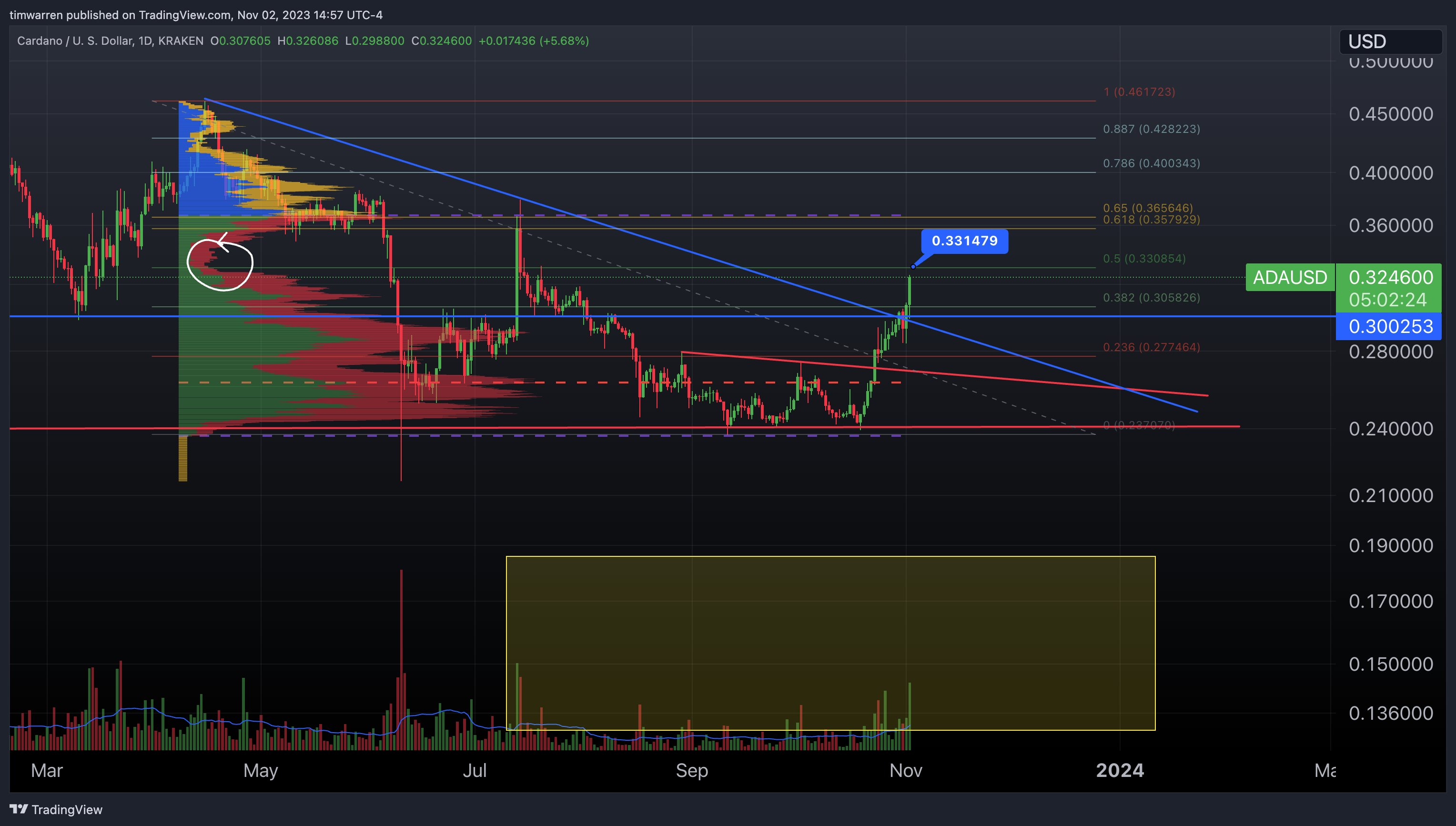 Diversos analistas se han atrevido a compartir predicciones del precio de Cardano. El reconocido analista y trader Tim Warren señaló a través de su cuenta en X (anteriormente Twitter) que el “siguiente nivel a tener en cuenta para Cardano es 0.33 dólares” y podría apuntar hacia los 0.36 dólares: