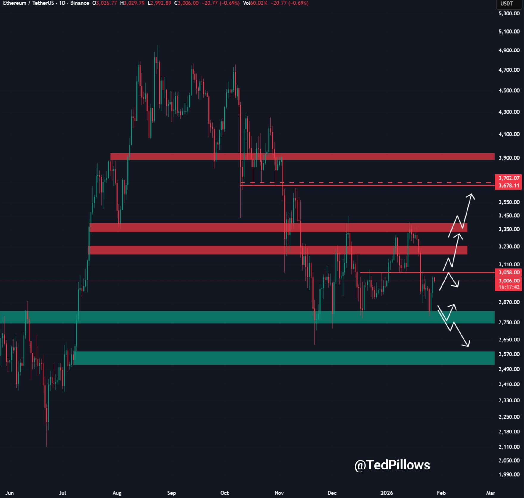 En paralelo, Ted Pillows destacó que Ethereum logró superar los 3,000 dólares. Sin embargo, necesita ciertas conticiones adicionales para confirmar en rally alcista. Estas lecturas apuntan a un escenario de recuperación moderada, no a un movimiento explosivo.