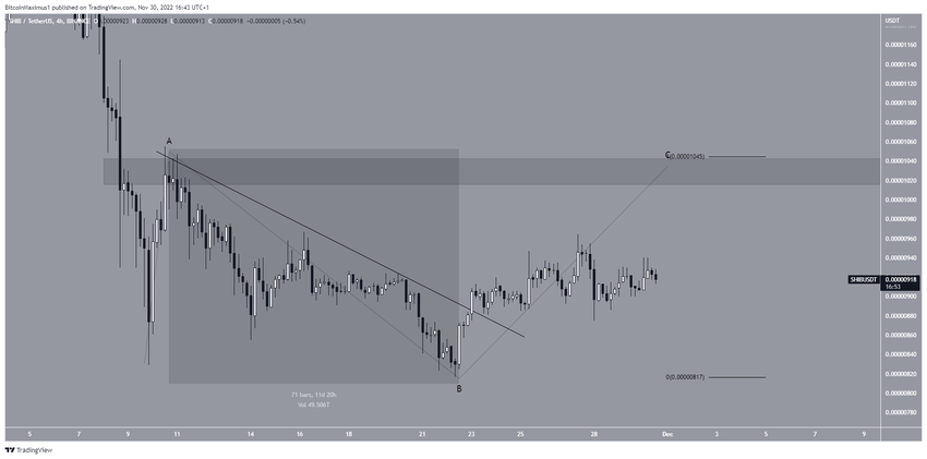 El gráfico de cuatro horas a corto plazo no hace nada para disuadir de la predicción bajista del precio SHIB. Mientras que el token Shiba Inu salió de una línea de resistencia descendente, todo el movimiento parece una estructura A-B-C correctiva.