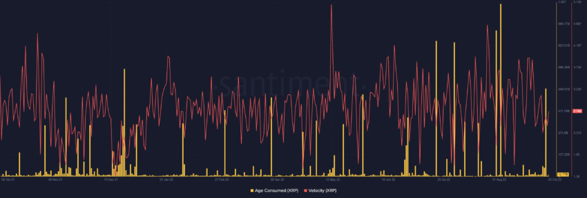 SponsoredDicho esto, un aumento en la métrica Age Consumed (edad consumida, en español), que ayuda a detectar cambios de dirección de precios a mediano y largo plazo, experimentó un aumento importante el 2 de octubre, lo que destaca que los tokens inactivos podrían estar moviéndose con la intención de hacer subir los precios.