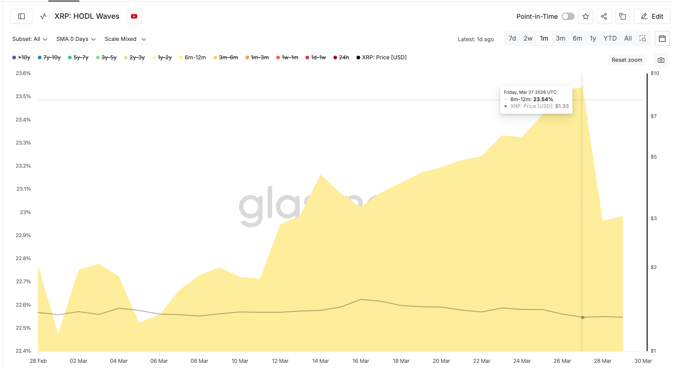 El grupo de 6 a 12 meses aumentó su participación hasta finales de marzo, pero luego comenzó a vender. Este cambio coincide con señales bajistas en el gráfico, lo que indica pérdida de confianza.