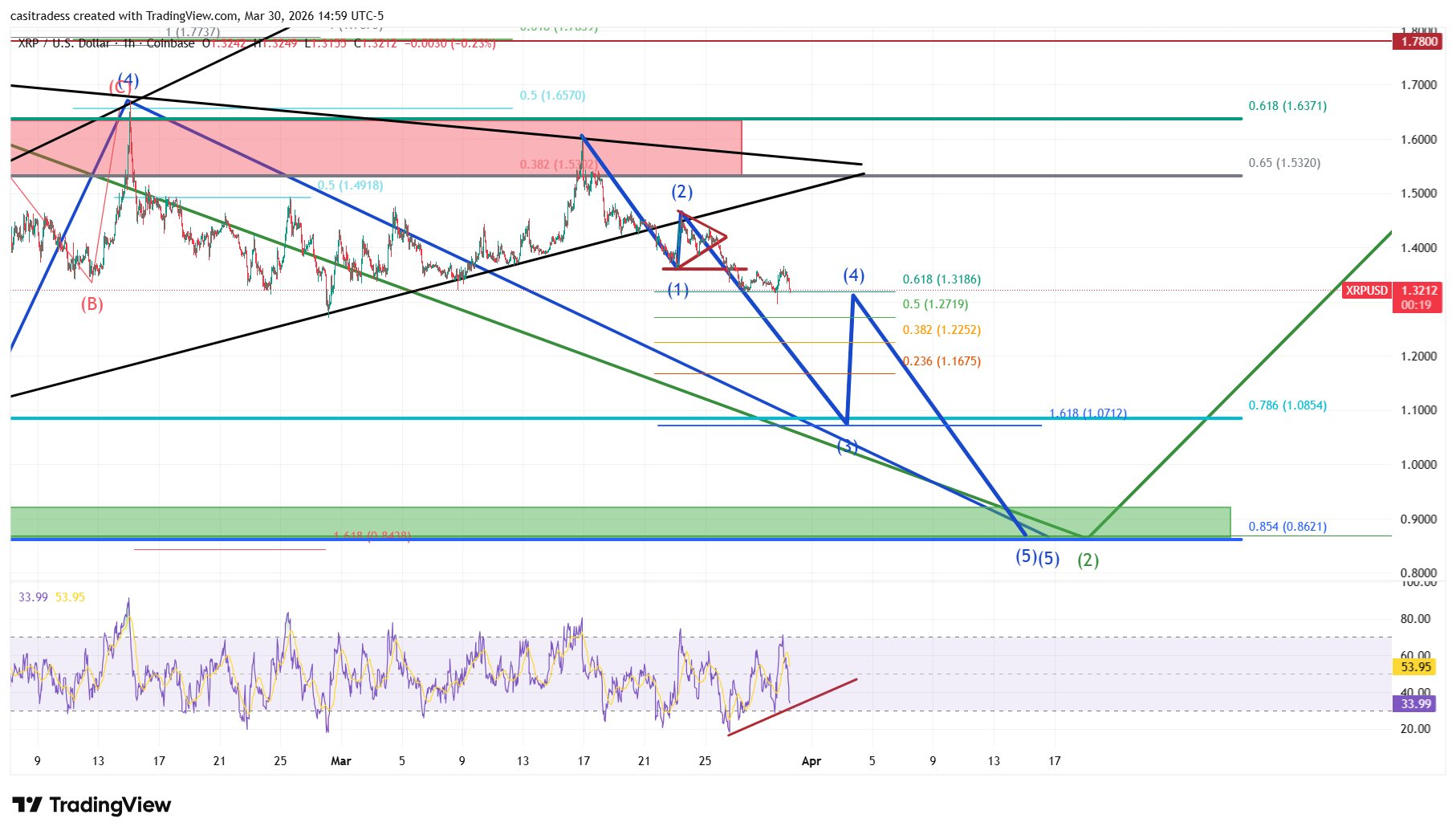 “En este momento, el precio intenta mantenerse alrededor de $1.31, pero este nivel representa una futura resistencia (extremo de la semana 4). Es lógico que nos estemos estancando aquí. Una vez que se rompa este nivel, la caída podría ser rápida y pronunciada”, advirtió CasiTrades.