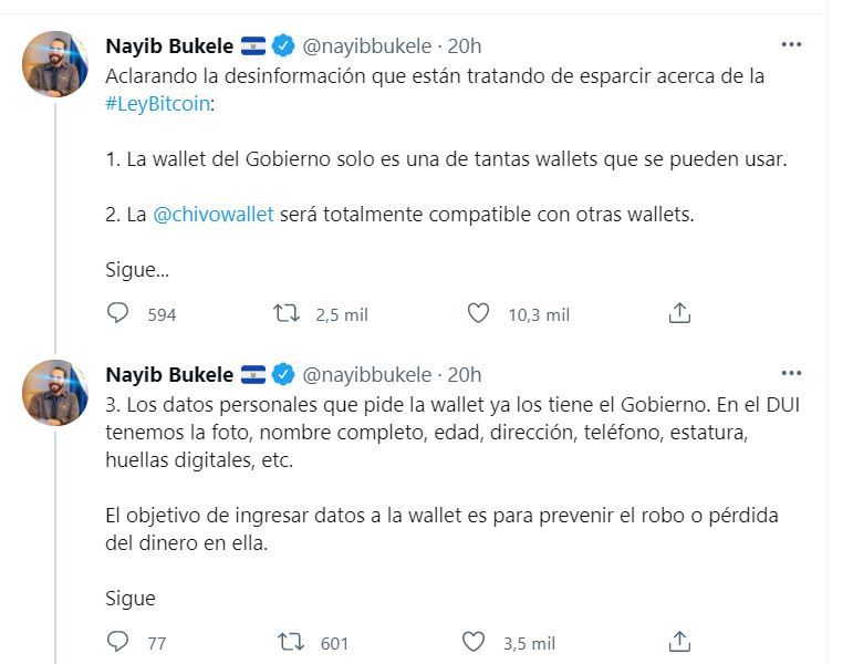 Además, aclaró que el uso del monedero oficial Chivo es una de las tantas que habrá en el mercado y que será compatible sin costo alguno (si utilizan la app oficial, no así con otras aplicaciones).