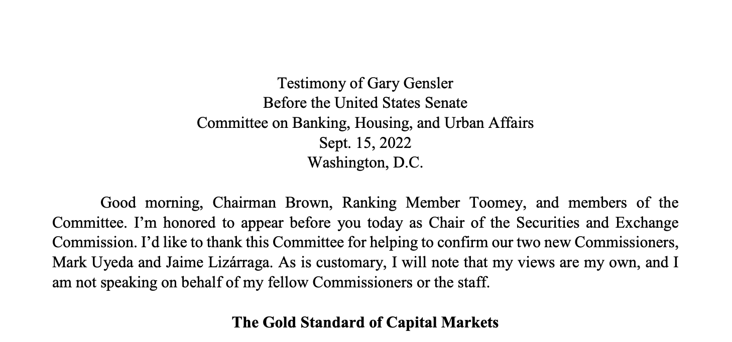 Gary Gensler señaló lo siguiente: