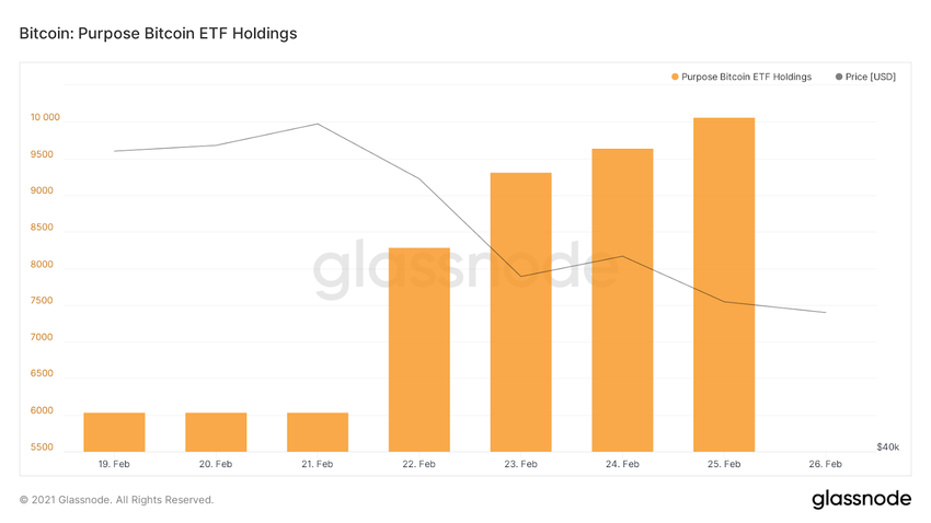 El fondo de inversión cotizado (ETF) de Bitcoin de Purpose Investments ha alcanzado un valor de 624 millones de dólares en solo nueve días.