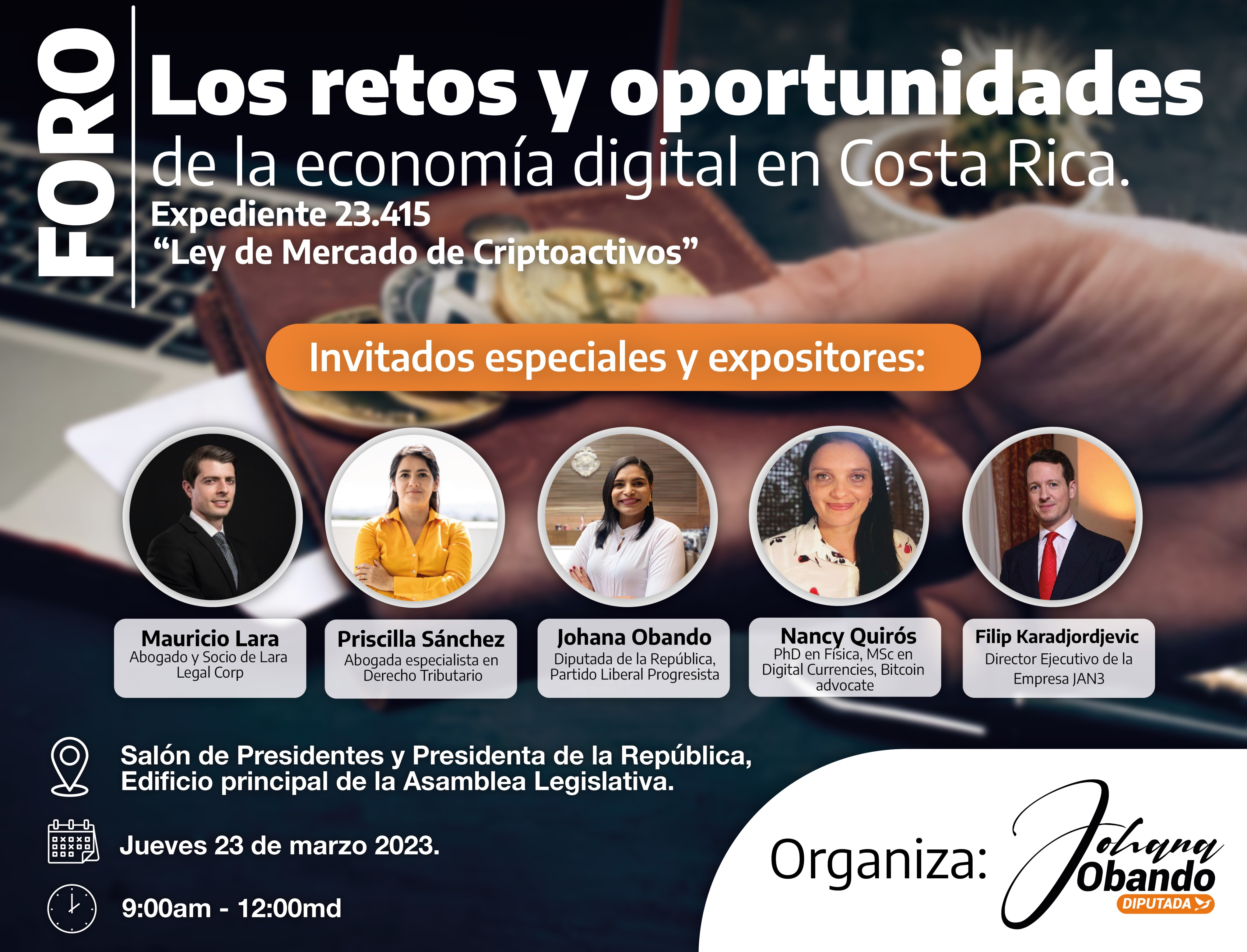 El caso de Costa Rica en relación a la posible legislación de las criptomonedas ha ido despacio y ha estado rodeado de sano escepticismo. Aunque esto ha contribuido a una mayor deliberación. Caso muy diferente a otros países como El Salvador en el que la legislación de Bitcoin fue introducida de golpe a la población. En el evento se busca plantear la posibilidad de la digitalización de la economía costarricense en un contexto mundial en el que cada vez más países están explorando y regulando este mercado.
