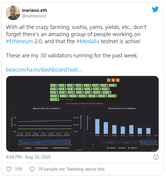 Recientemente, todos los ojos han estado puestos en DeFi y la gran cantidad de ofertas y oportunidades que han surgido en la naciente industria. A medida que el TVL de DeFi supera los 8 mil millones de dólares, la atención se ha alejado del testnet de la Ethereum, que todavía está obteniendo sus propios logros.