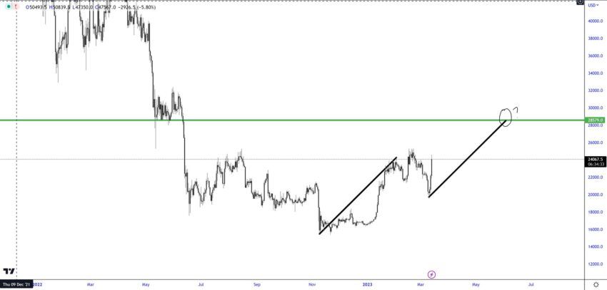 El trader @trader1sz, popular en la comunidad cripto, a su vez, cree que el primer límite para BTC será de 28,000 dólares.