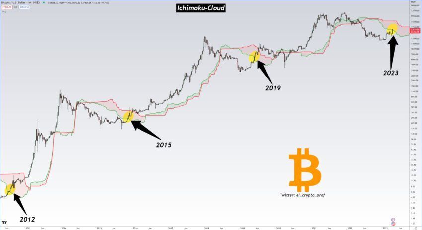 Por otra parte, @el_crypto_prof vio el potencial de crecimiento de BTC en el comportamiento del indicador Ichimoku.
