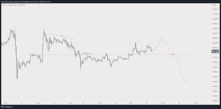 Sin embargo, existen otras proyecciones de Bitcoin que no excluyen la pérdida de los niveles de precios actuales. Por ejemplo, Inmortal, un analista popular en la comunidad cripto, ve el potencial de que BTC baje a caiga a 26,000 dólares.