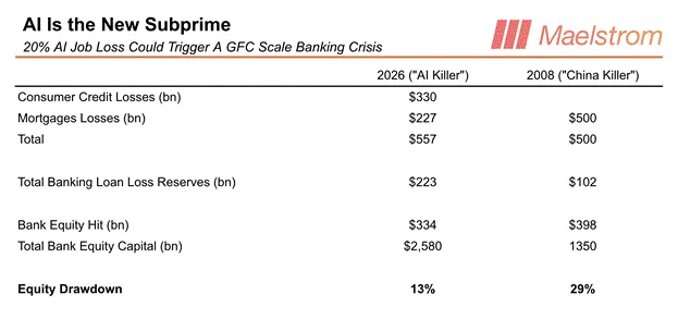 SponsoredEl analista sugiere que la pérdida de ingresos de estos trabajadores reduciría el consumo y frenaría el flujo de crédito, provocando una contracción económica. En ese contexto, el mercado comenzaría a descontar impagos y debilidad bancaria antes de que los bancos centrales actúen.