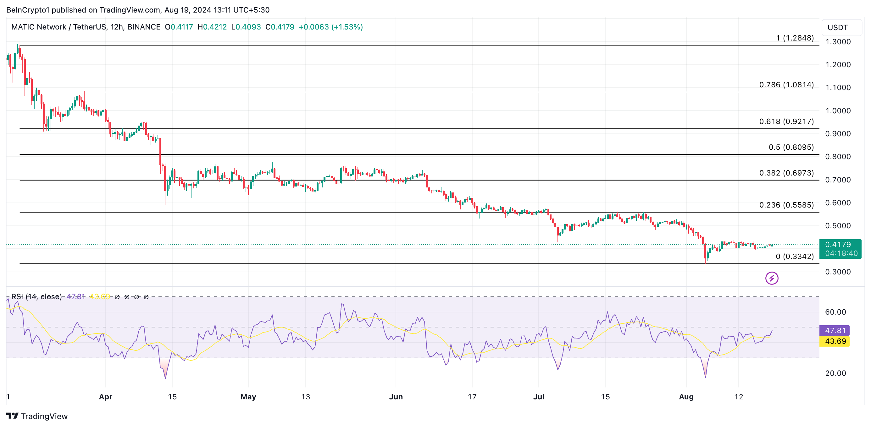 El desempeño moderado del precio de MATIC refleja la reciente caída en la actividad de la red, con la criptomoneda cotizando a 0.41 dólares, con un aumento de solo el 3% en las últimas 24 horas.