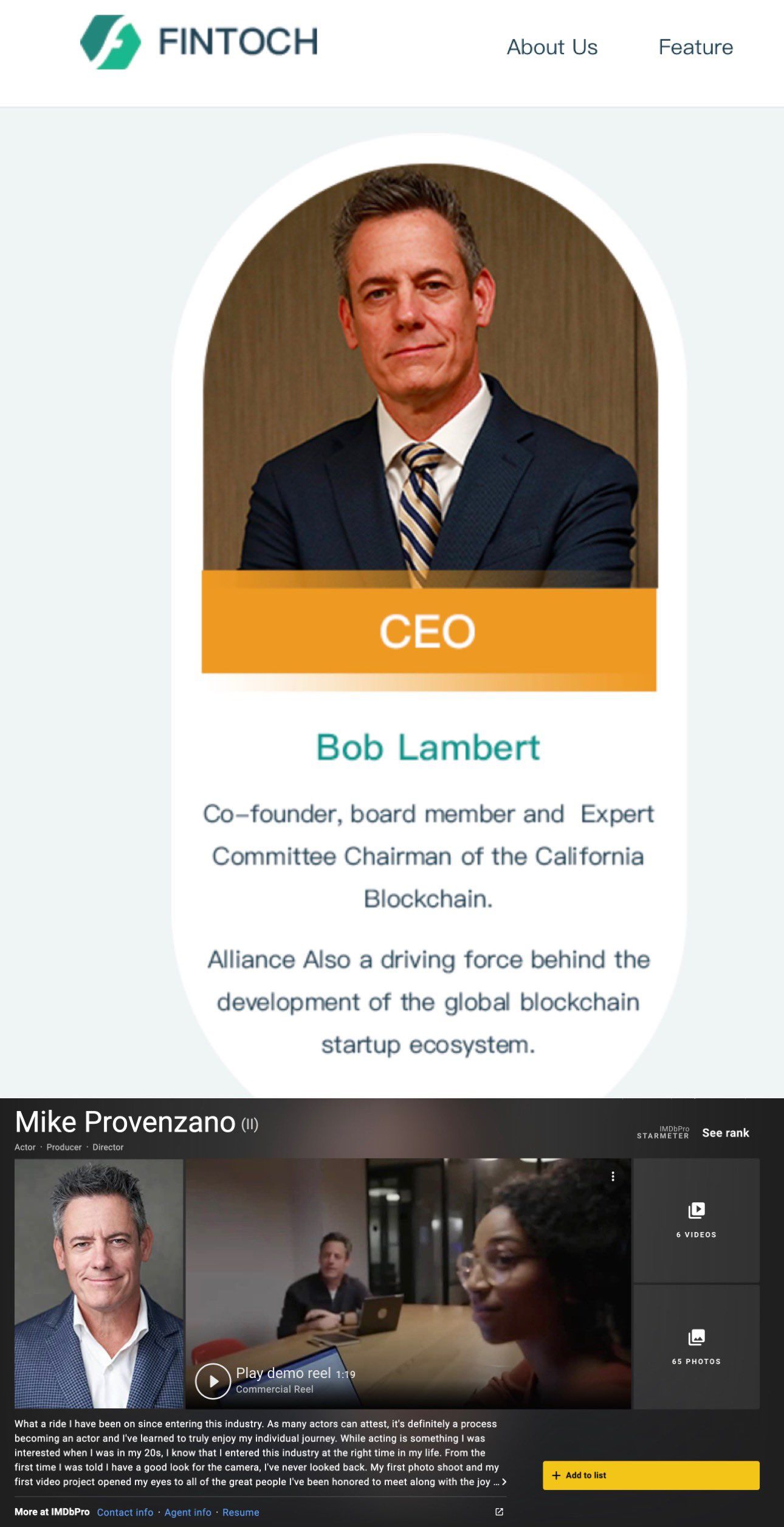 Para colmo, el detective on-chain mostró cómo DF Fintoch colocó como su CEO a Bob Lambert, un personaje ficticio que utilizó la fotografía del jefe ejecutivo del actor Mike Provenzano.