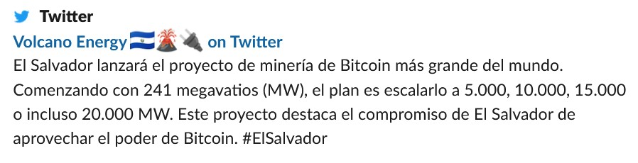“El camino de El Salvador hacia la libertad financiera está pavimentado con Bitcoin y Volcano Energy. Al aprovechar el poder de la energía renovable en la minería de Bitcoin, el país está estableciendo una visión audaz de ser libre de deudas para el año 2030”.