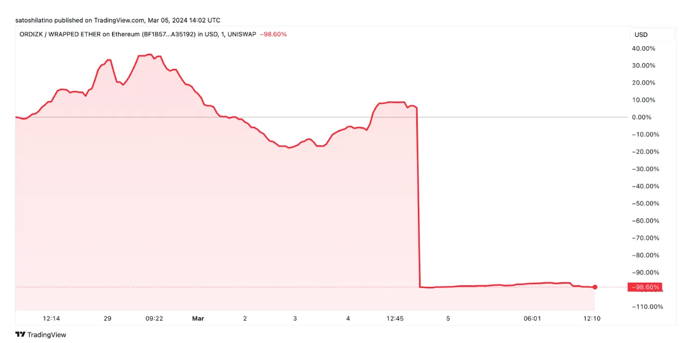 El proyecto de tokens BRC-20 OrdiZK se vio implicado en un scam de salida que robó aproximadamente 1,40 millones de dólares en fondos de inversores.