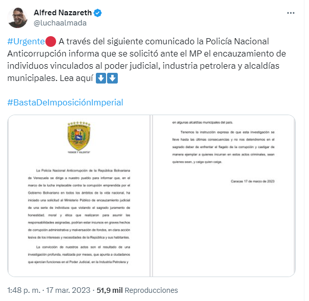 Todo comenzó de sorpresa. En las redes sociales se filtró que se estaban dando detenciones en la cúpula gobernantes y de aliados de los implicados. Los rumores no dejaban de llegar y todos apuntaban a Tareck el Aisammi como el principal implicado.