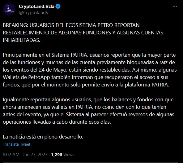 Todo esto afectó al Petro. La blockchain del token se detuvo, hubo rumores de que estarían cerrando sus operaciones y muchos vieron que sus fondos en Petro desaparecían momentáneamente.