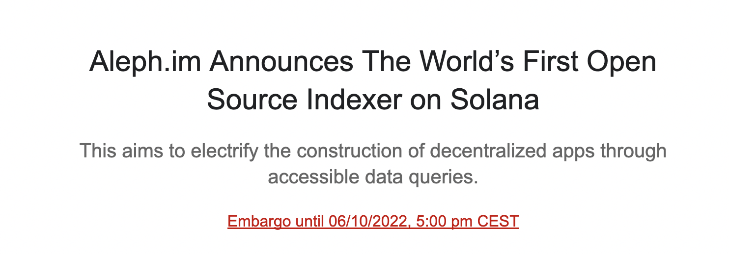 En agosto de 2021, la empresa lanzó por primera vez su tecnología de indexación descentralizada para el ecosistema blockchain de Solana. Luego, los indexadores se ejecutaron en un entorno cerrado. Ahora los proyectos pueden crear indexadores personalizados que se ejecutan en la infraestructura de Aleph.