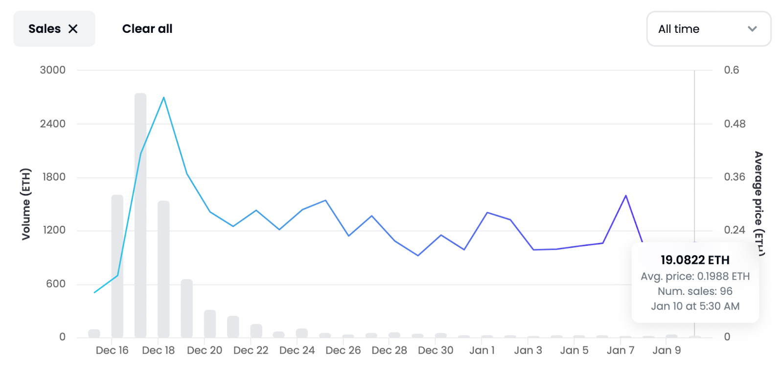 Los Trump NFT ofrecieron varios beneficios, como una cena con el expresidente y una ronda de golf en la propiedad de Trump. Sin embargo, dentro de un mes, los NFT perdieron impulso . El precio mínimo ha bajado a 0,17 ETH desde un máximo de 0,84 ETH, mientras que las ventas de NFT han bajado de 2,855 a 96, dólares, según OpenSea.