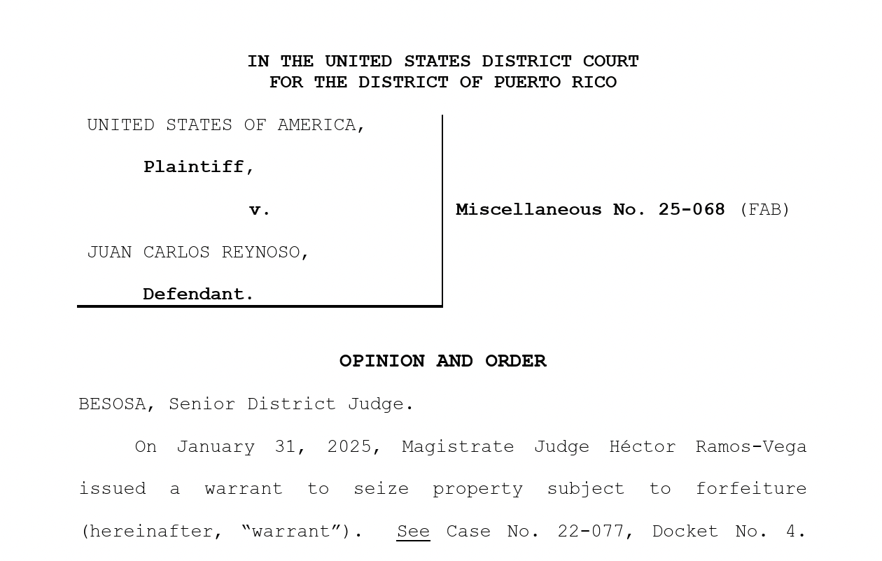 El Tribunal de Puerto Rico acusó a Juan Carlos Reynoso o “Reynoso” de desacato civil y desestimó cualquier defensa del acusado, y ordenó la incautación de 119,65 BTC o más de 12 millones de dólares. Acusó que “Reynoso” transfirió las criptomonedas de un monedero incautado a muchos monederos no identificados.