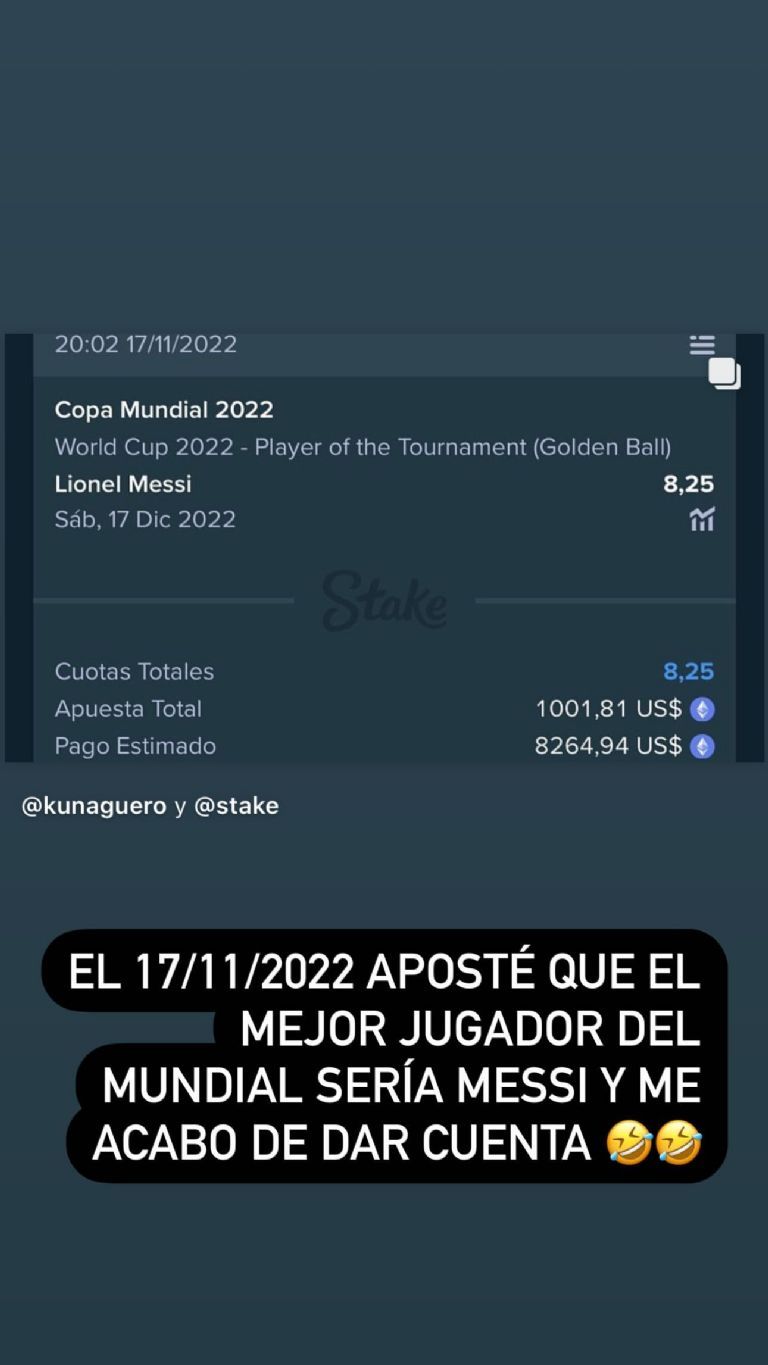“El 17/11/2022 aposté que el mejor jugador del Mundial sería Messi y me acabo de dar cuenta.”