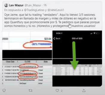 El CEO de Quantfury por su parte, publicó información privada de Merino, compartiendo los pobres resultados de sus operaciones de trading en la plataforma, como una forma de probar que además de ser un mal operador y que era deshonesto con sus usuarios al venderles malas señales de trading.