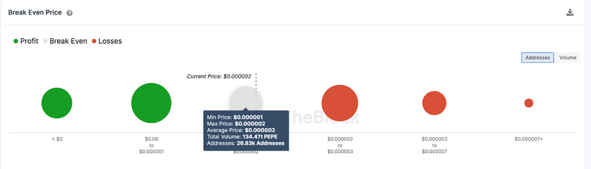 Sin embargo, según los datos de distribución Break-Even Price de IntoTheBlock, la resistencia de 0.0000015 dólares podría ofrecer soporte.