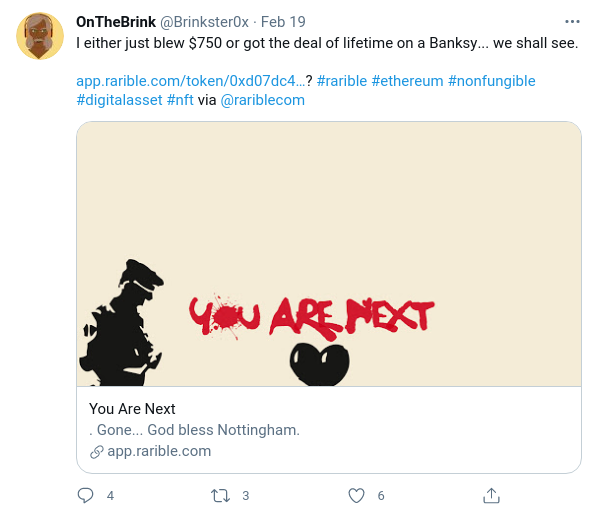 Varios fans de los NFT fueron estafados el mes pasado al comprar falsos NFT de Banksy pensando que estaban comprando muy buenas ofertas. Antes de que “Pest Control”, la empresa de autenticación de Banksy, consiguiese negar cualquier afiliación con los NFT, ya se habían producido ventas por el valor de un millón de dólares.