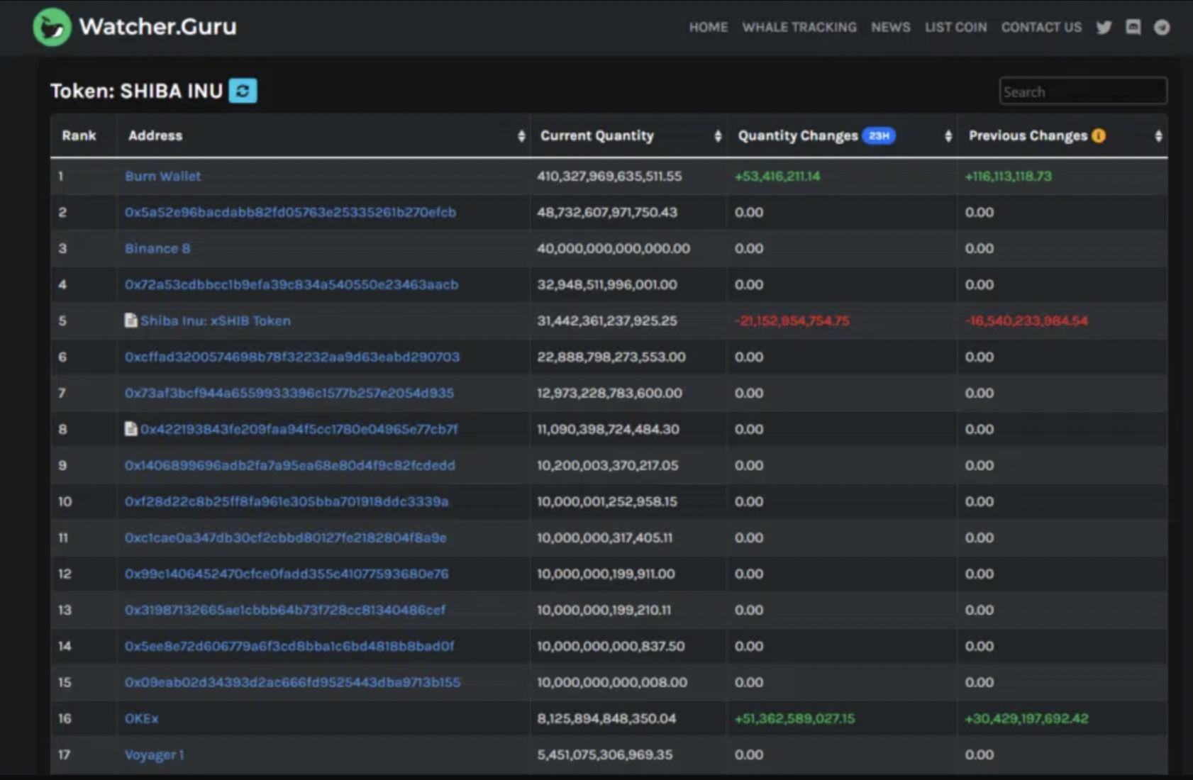 El monedero más extenso de tokens SHIB es, por supuesto, Burn Wallet , también conocida como Dead Wallet. Aquí es donde se queman todas las fichas y, en consecuencia, se agotan. Con un valor de 4,800 millones de dólares, equivale a 48,732 607,971,750,43 tokens en el momento de escribir este artículo. Este monedero está en constante crecimiento con un aumento de 12 horas de más de 4 millones de tokens adicionales.