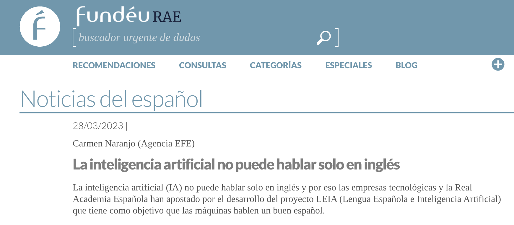 La RAE, junto con importantes empresas tecnológicas, está desarrollando el proyecto LEIA (Lengua Española e Inteligencia Artificial), que tiene como objetivo lograr que las máquinas puedan hablar un buen español. La idea es que la IA se pueda utilizar para ayudar en tareas cotidianas, trabajo, investigación científica o tratamiento de enfermedades.