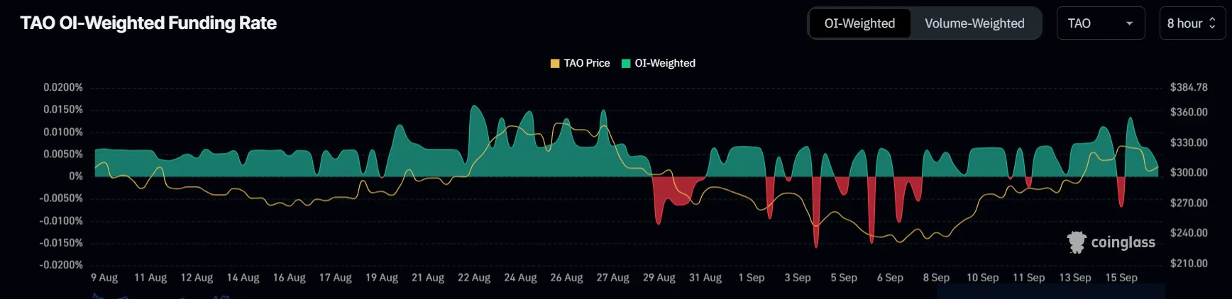 Además, el momento general para Bittensor también está mostrando fuerza, particularmente al examinar la tasa de financiación. Datos recientes revelan que los contratos largos están dominando a los cortos, señalando que los traders esperan un aumento de precio.