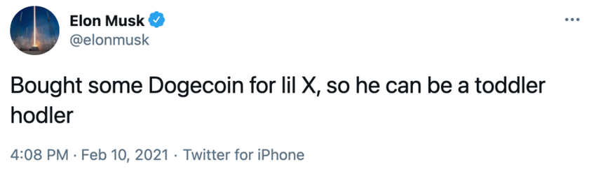 Un factor importante a considerar es el hecho de que la reciente acción del precio de Dogecoin no fue motivada por un grupo único de Reddit solamente. Elon Musk, fundador de Tesla y SpaceX, ha mostrado un nuevo interés en Dogecoin.