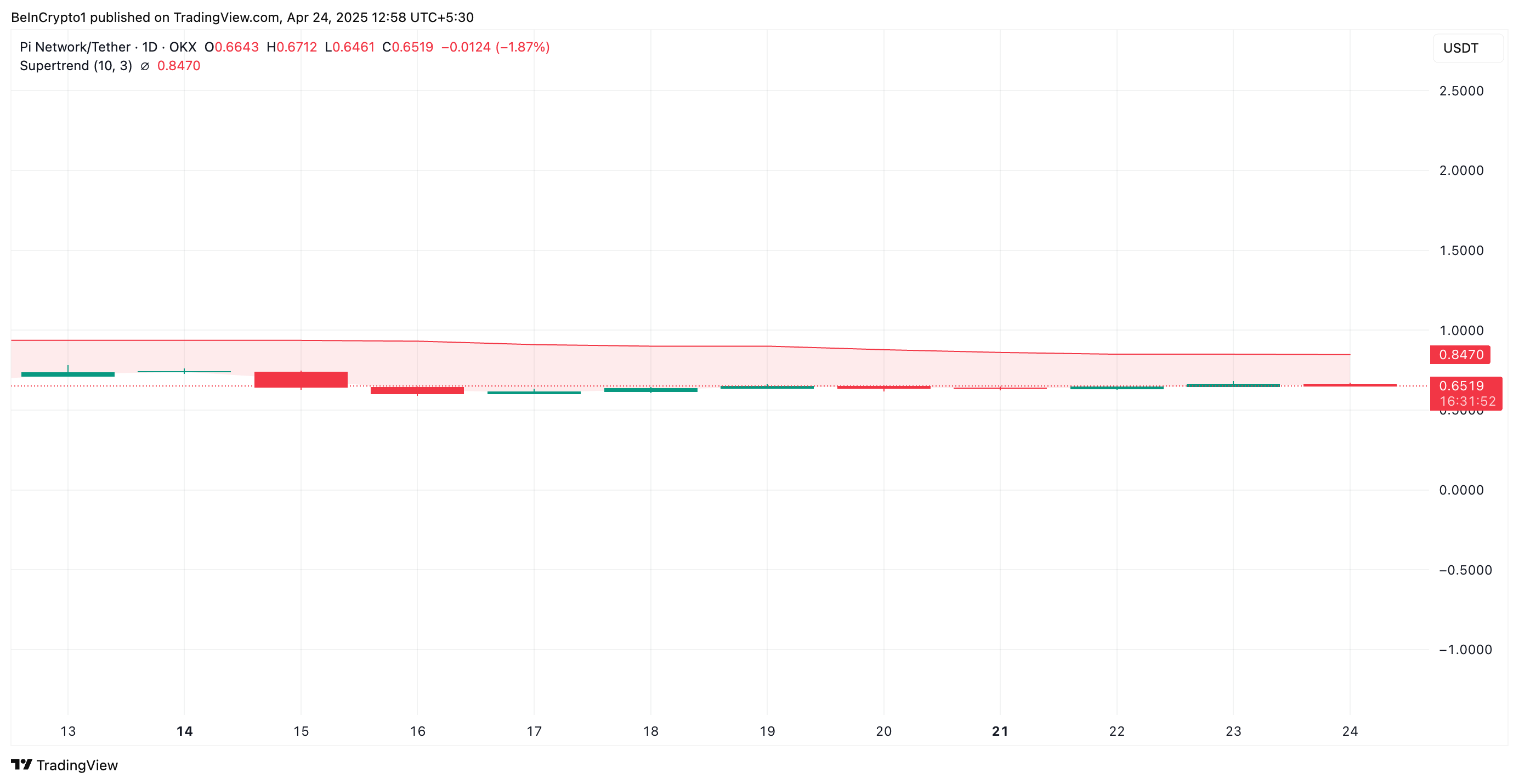 Además, el indicador Super Trend de PI, que continúa actuando como resistencia dinámica por encima del precio del token, añade a la perspectiva cautelosa. Actualmente está en 0.85 dólares.