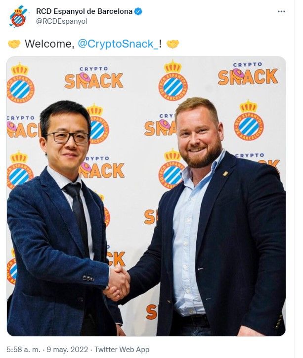 Con este acuerdo el Espanyol empezará a lucir el logo de Crypto Snack, una empresa cripto enfocada en el iGaming y el procesamiento de pagos a través de la tecnología blockchain. Aún no se conocen todos los detalles sobre la venta, pero se sabe que será un contrato de tres años y el logo de la compañía aparecerá en la vestimenta que usa el club para calentar.
