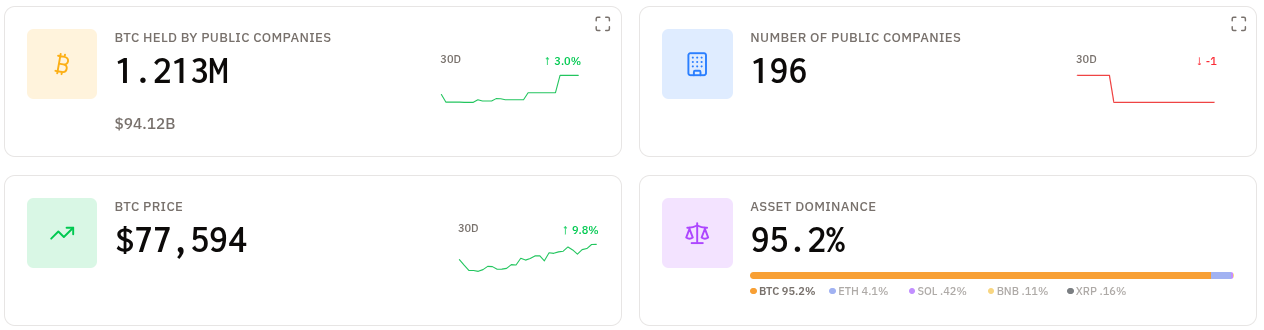 - Las empresas públicas acumulan 1,21 millones de BTC y Strategy sumó más de 48,000 BTC solo en las últimas dos semanas.