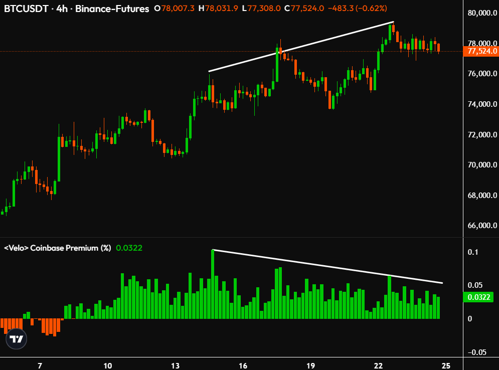 “El precio de $BTC está subiendo. Mientras que el Coinbase Premium de Bitcoin de está cayendo. Una clara señal de debilitamiento de la demanda spot”, expuso Ted.