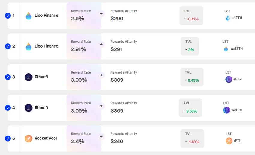 Este rendimiento sigue estando muy por debajo del de otras redes Proof-of-Stake populares, como Cosmos, Polkadot, Celestia y Solana. Las recompensas por staking para estas redes competidoras oscilan entre el 7% y el 21%.