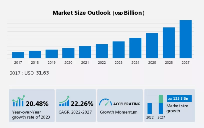 Lógicamente el plan de la salud no es el único involucrado en el alcance de la IA. De acuerdo con un reporte de Technavio, se estima que el tamaño del mercado global de inteligencia artificial crecerá alrededor del 22,26 % entre 2022 y 2027. Se estimas, además, que el tamaño del mercado aumente en 125 300 millones de dólares.