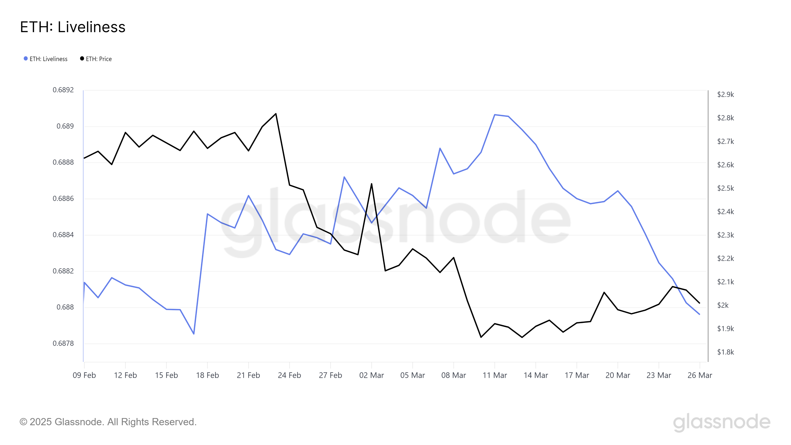 El momentum macro de Ethereum está respaldado además por el indicador Liveliness, que rastrea la actividad de los holders a largo plazo (LTH). El indicador Liveliness alcanzó recientemente un mínimo mensual, señalando que los LTH están acumulando y manteniendo su ETH.