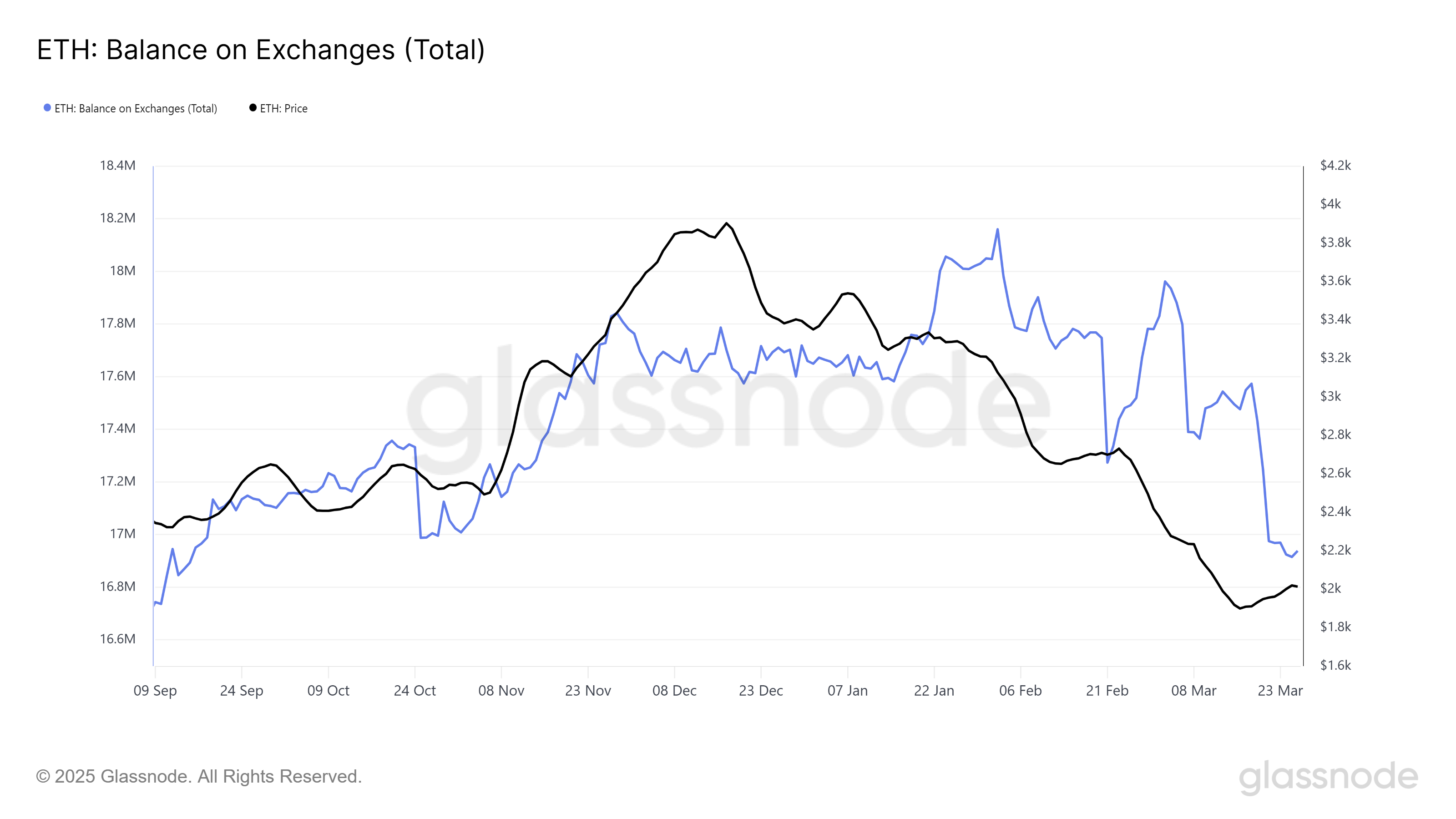 El suministro de Ethereum en exchanges ha disminuido en 635,000 ETH en los últimos seis días, representando un valor de más de 1.28 mil millones de dólares.