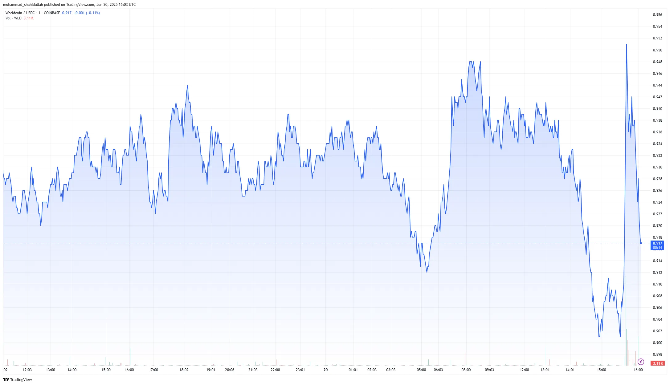 Mientras tanto, el precio del token WLD de Worldcoin mostró signos de recuperación tras la circulación del rumor. El gráfico refleja un fuerte repunte después de caer por debajo de 0,91 dólares, lo que sugiere que los traders podrían estar posicionándose para una posible ruptura de precios si la noticia se confirma.