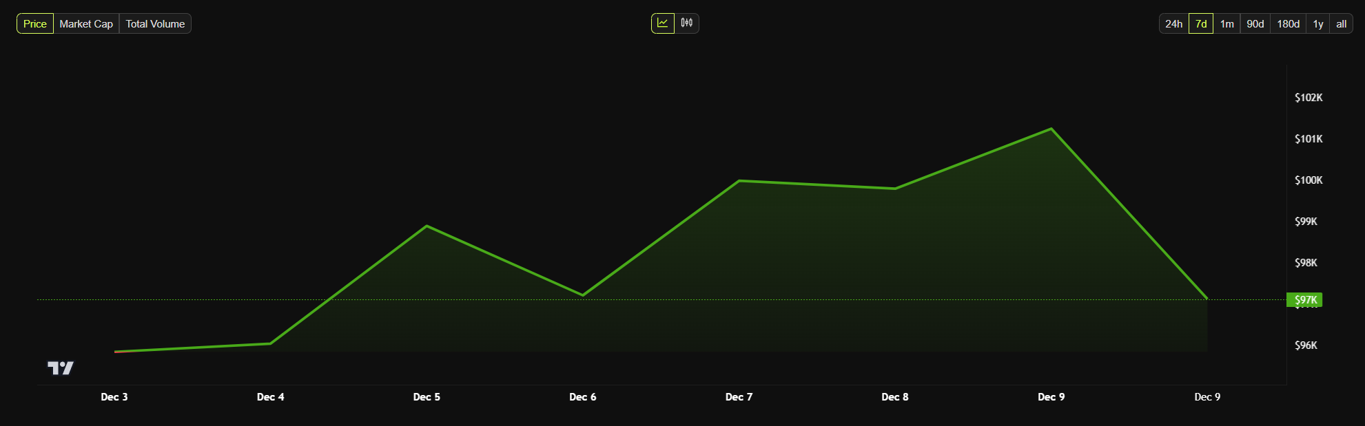 La semana pasada, el presidente Vladimir Putin declaró públicamente que nadie puede prohibir Bitcoin, y que continuará desarrollándose. Esto fue, en última instancia, el último impulso que BTC necesitaba para alcanzar su hito de 100,000 dólares tras rondar la zona de los 95,000 dólares durante un mes.