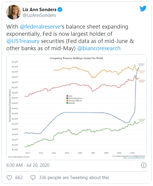 En un giro repentino, la Reserva Federal (Fed) se ha convertido en el mayor accionista de valores del Tesoro de los Estados Unidos en todo el mundo.