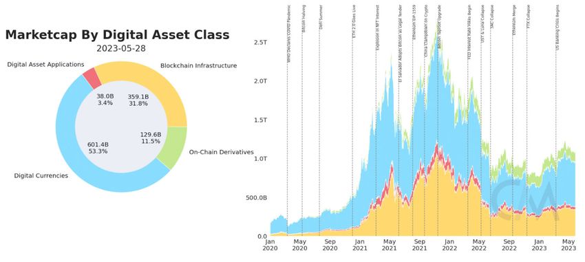 La investigación dividió la industria en diferentes clases de activos y sectores, siendo las criptomonedas las más grandes.