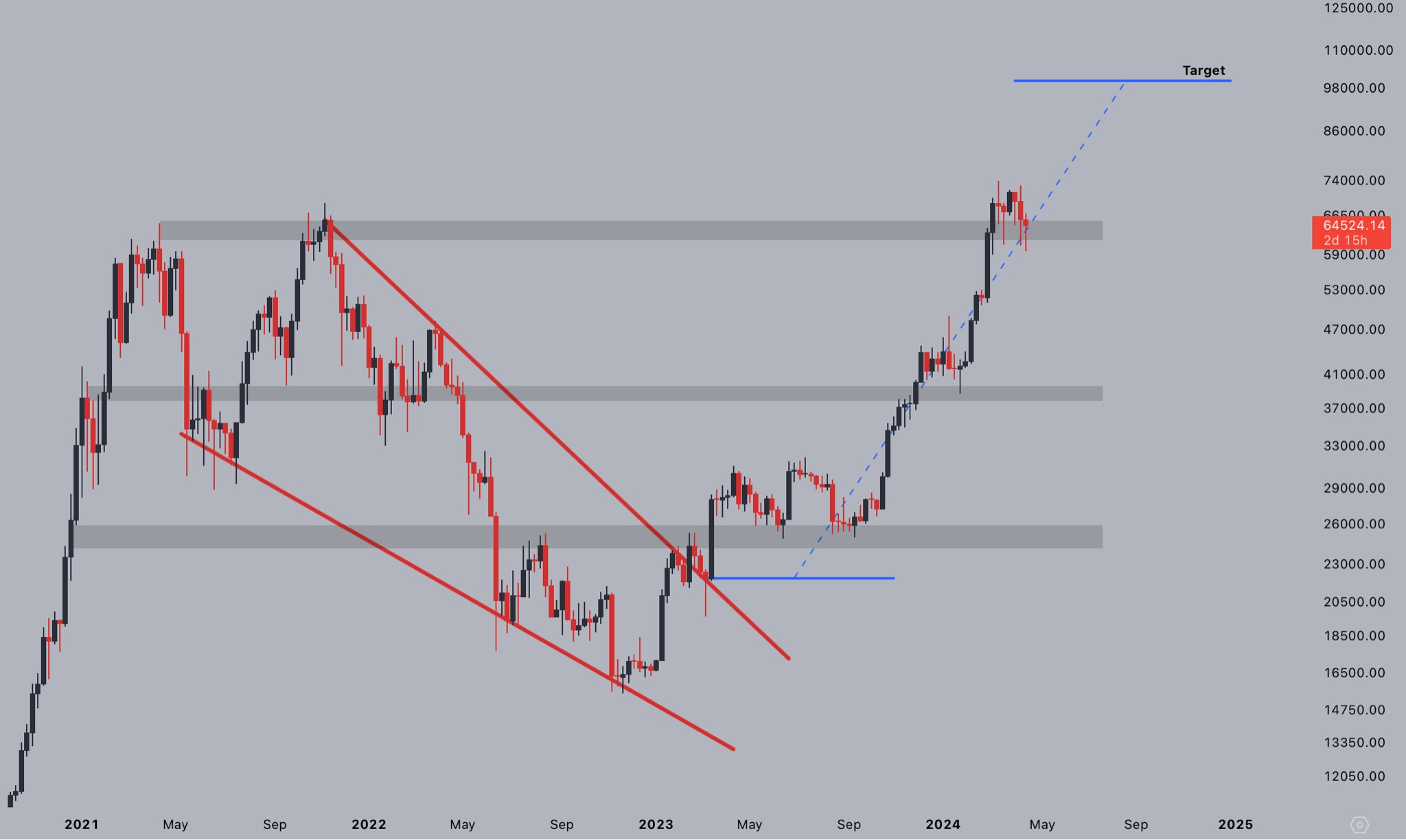 Por ejemplo, el trader Jelle expuso a sus 80 mil seguidores en X (antes Twitter) que el evento catalizará el precio de BTC hasta los 100,000 dólares.