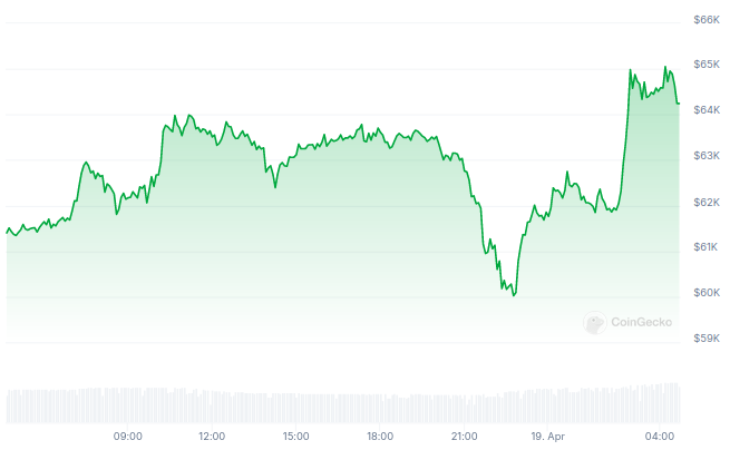 Sin embargo, BTC se ha recuperado y cotiza en 64,555 dólares tras aumentar más del 5% en las últimas 24 horas.