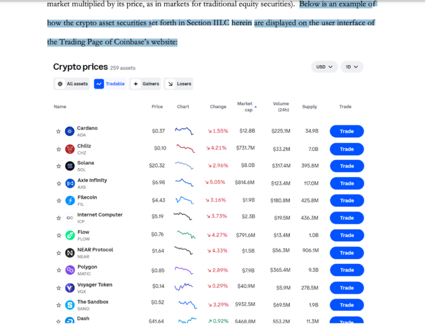 Esta es la lista de “valores” incluidos en las demandas de la SEC contra Binance y Coinbase