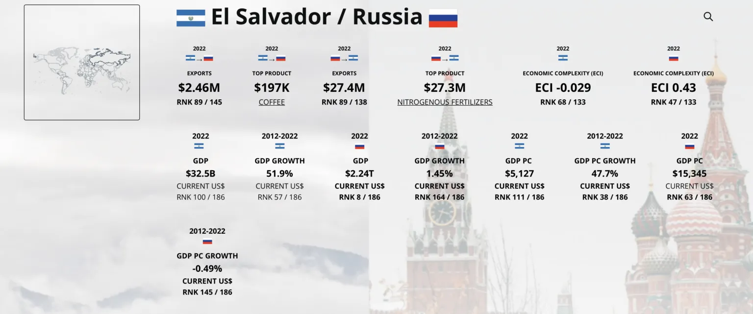 Geopolíticamente, una alianza con Rusia podría mejorar la posición global de El Salvador, reduciendo su dependencia de Estados Unidos y consolidando las relaciones con potencias emergentes como China y Rusia. Económicamente, El Salvador aspira a equilibrar su déficit comercial con Rusia, puesto de relieve por la mención de Ulloa a una importación de 16 millones de dólares de Rusia en 2021 sin las correspondientes exportaciones.