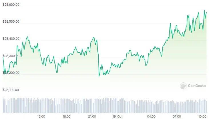 En el transcurso de la mañana del lunes 16 de octubre, diversos rumores sobre la posible aprobación del primer fondo cotizado en bolsa (ETF) spot de Bitcoin en Estados Unidos impulsó al precio de Bitcoin a nuevos máximos.