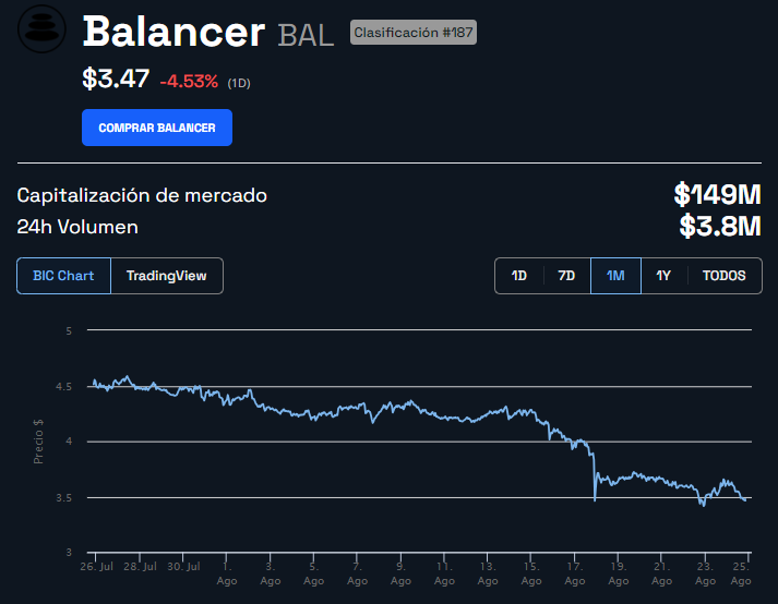 En un reciente comunicado, el equipo detrás del DEX Balancer ha informado sobre una “vulnerabilidad crítica” que afecta a algunos pools de la versión 2. Aunque Balancer logró mitigar el 80 % de la amenaza, aún persiste un riesgo del 4 % del valor total bloqueado (TVL, por sus siglas en inglés), según una publicación en el foro de Balancer.